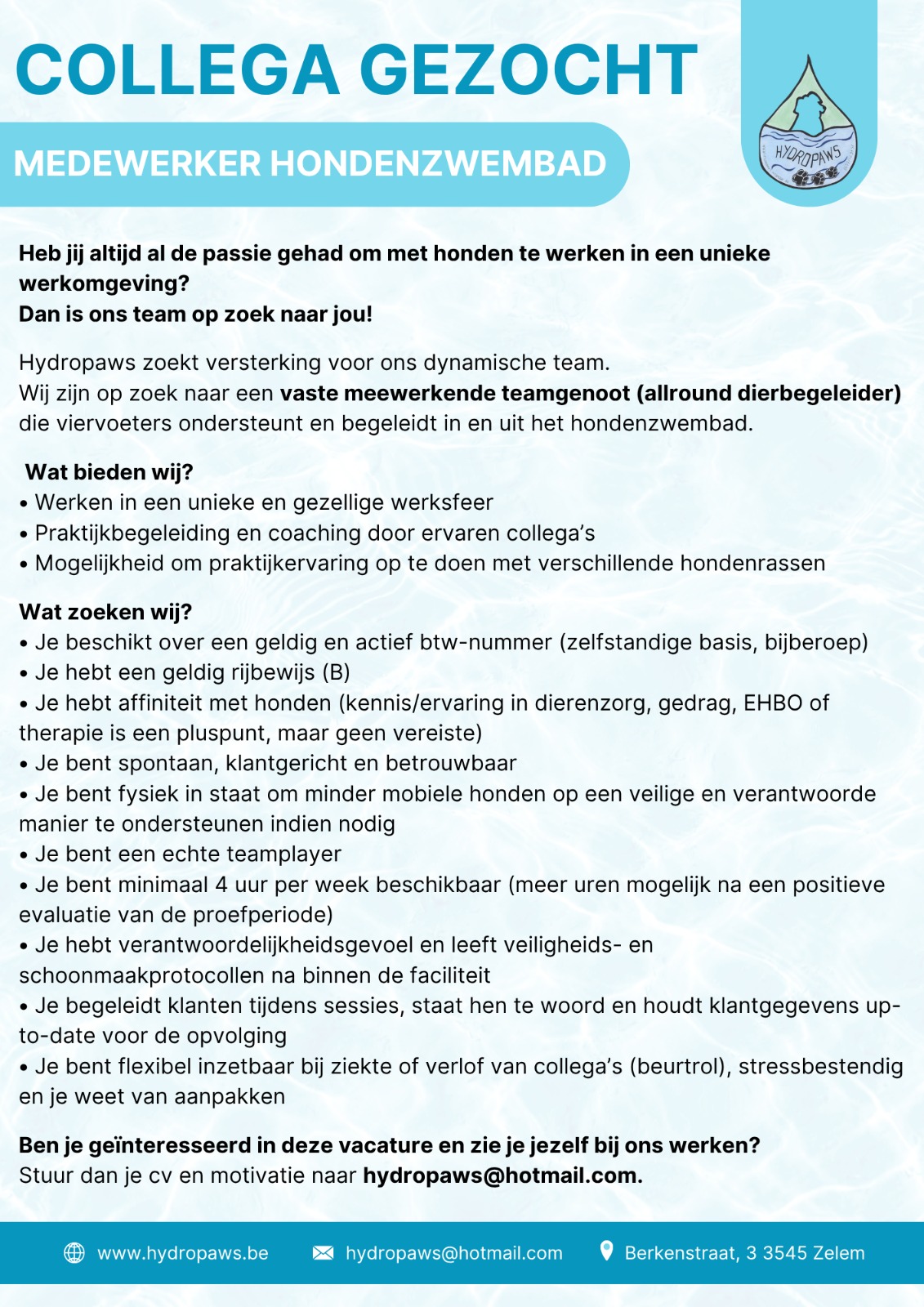 Maak van je liefde voor honden je werk en versterk ons enthousiaste team in het hondenzwembad!